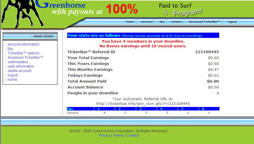 これまで、デスクトップ広告グリーンホース(GreenHorse)に登録して、